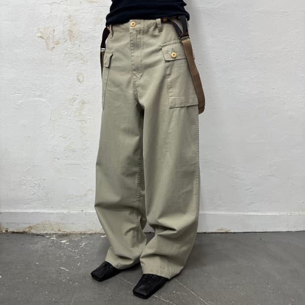 SIMPLE LIFE cotton two-pleats wide tapered trouser color : beige brown size : 82 허리 41 밑위 36 허벅지 36 총장 105 밑단 23 fabric : 코튼 100% - 상급의 컨디션 - 다양한 코디네이션에 활용 가능한 심플한 디자인 - 차분한 분위기를 지닌 베이지 브라운 컬러 - 적당한 두께감과 부드러운 재질감 - 투 턱의 볼륨감 있는 와이드 테이퍼드 실루엣 - model spec : 165 / 50 (woman)